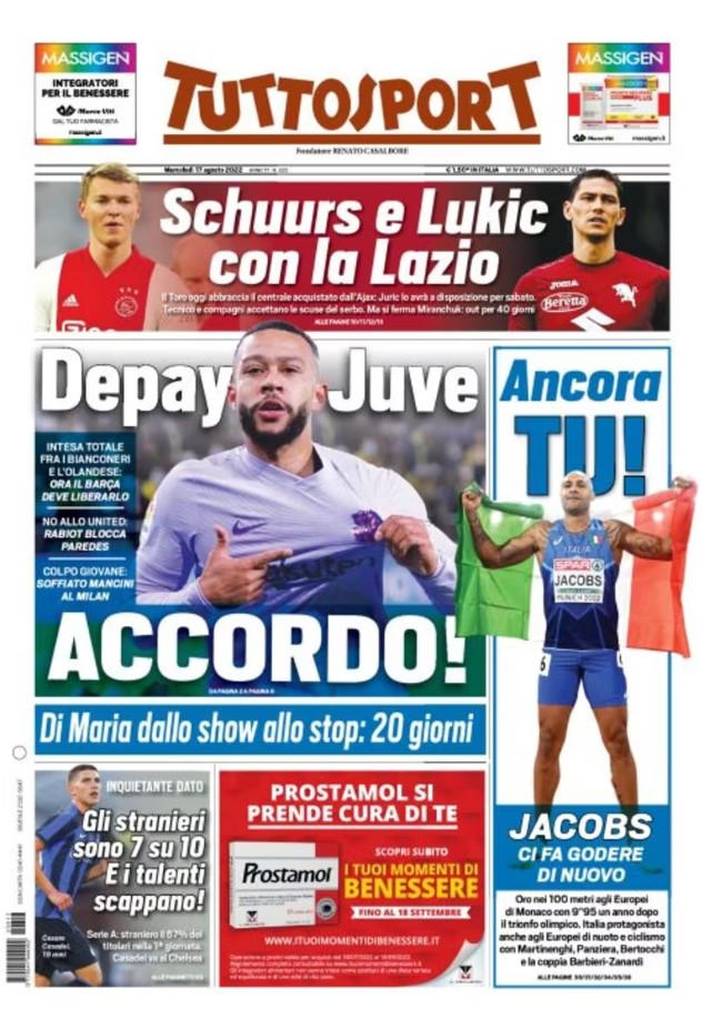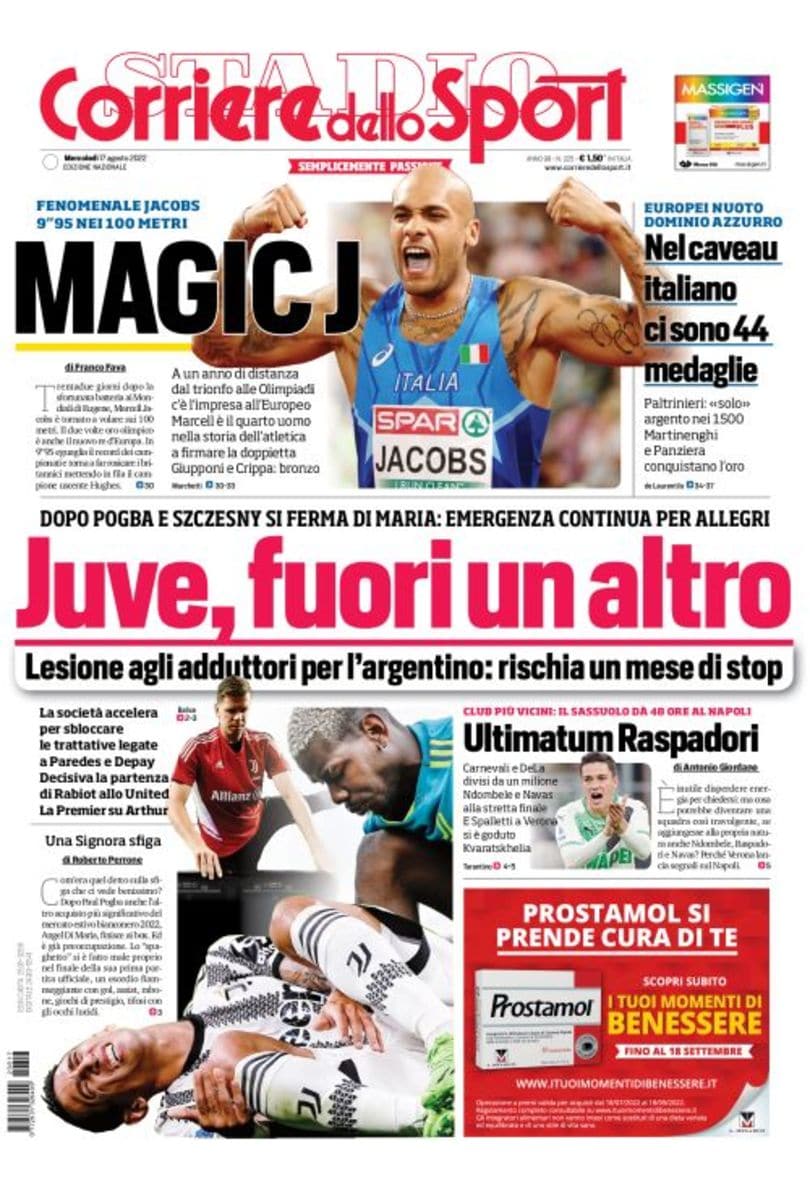 La redazione di calciocrotone.it propone ai lettori le prime pagine dei tre quotidiani sportivi in edicola oggi, mercoledì 17 agosto 2022. Di seguito le prime di La Gazzetta dello Sport, Corriere dello Sport e TuttoSport. Buona visione.
