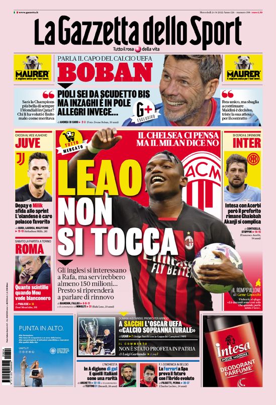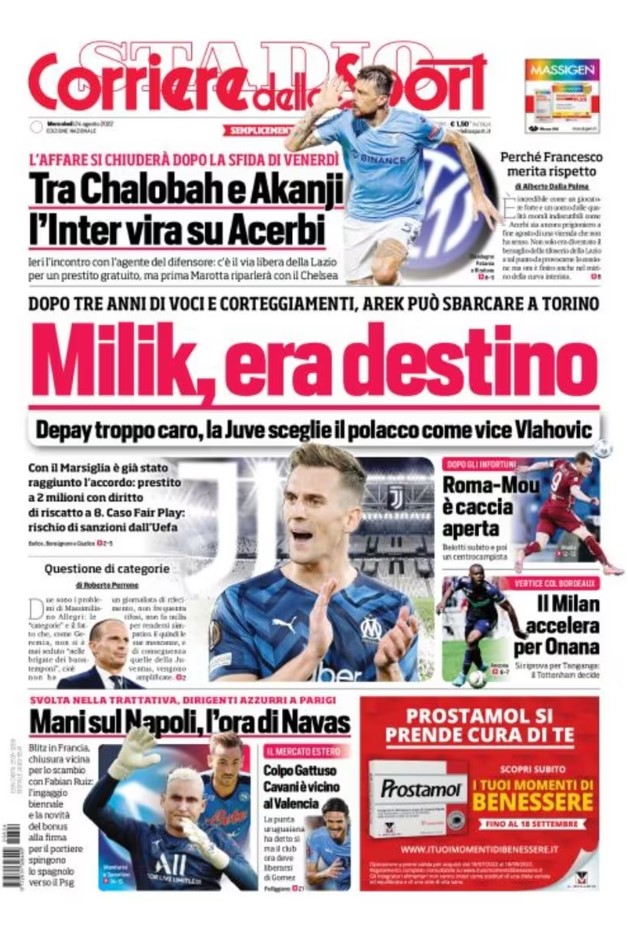 La redazione di calciocrotone.it propone ai lettori le prime pagine dei tre quotidiani sportivi in edicola oggi, mercoledì 24 agosto 2022. Di seguito le prime di La Gazzetta dello Sport, Corriere dello Sport e TuttoSport. Buona visione.