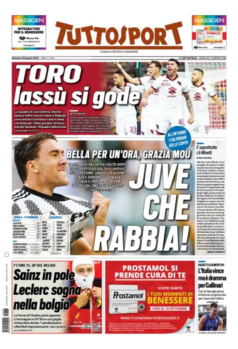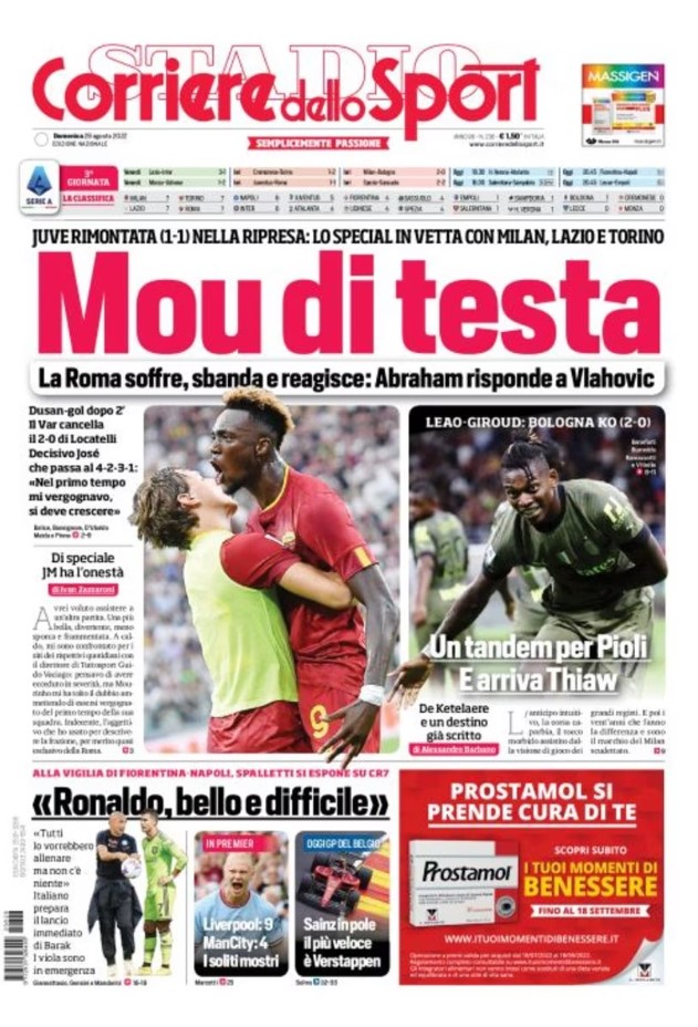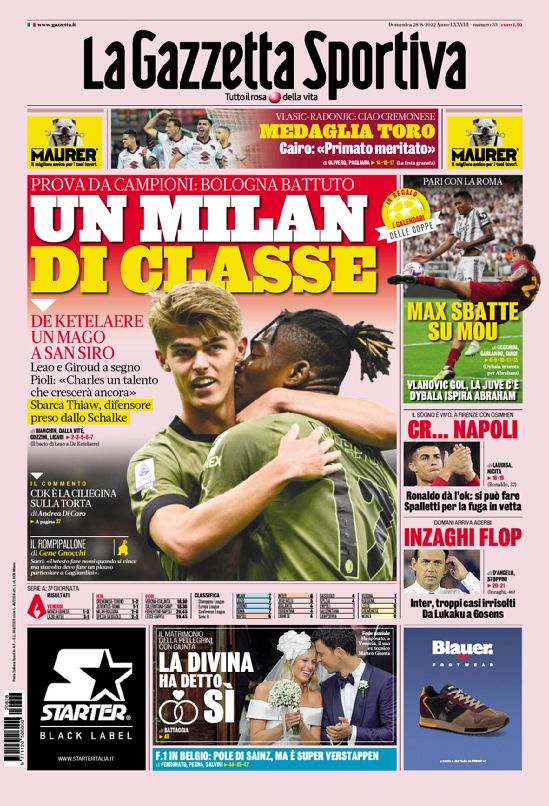 La redazione di calciocrotone.it propone ai lettori le prime pagine dei tre quotidiani sportivi in edicola oggi, domenica 28 agosto 2022. Di seguito le prime di La Gazzetta dello Sport, Corriere dello Sport e TuttoSport. Buona visione.