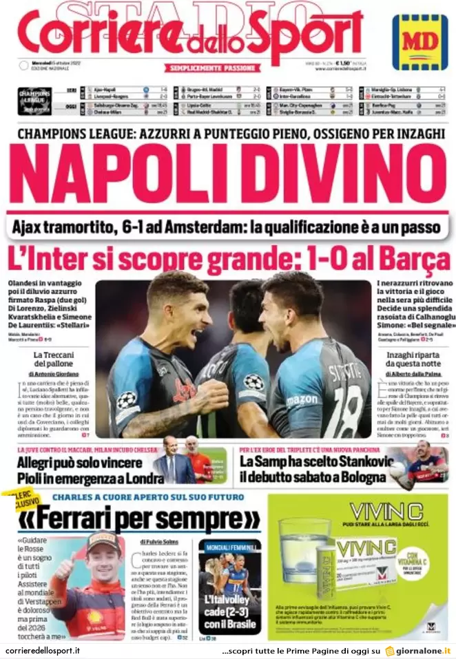 La redazione di calciocrotone.it propone ai lettori le prime pagine dei tre quotidiani sportivi in edicola oggi, mercoledì 5 ottobre 2022. Di seguito le prime di La Gazzetta dello Sport, Corriere dello Sport e TuttoSport. Buona visione.