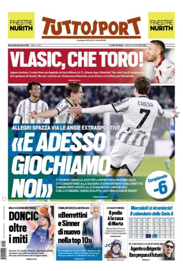 La redazione di calciocrotone.it propone ai lettori le prime pagine dei tre quotidiani sportivi in edicola oggi, giovedì 29 dicembre 2022. Di seguito le prime di La Gazzetta dello Sport, Corriere dello Sport e TuttoSport. Buona visione.