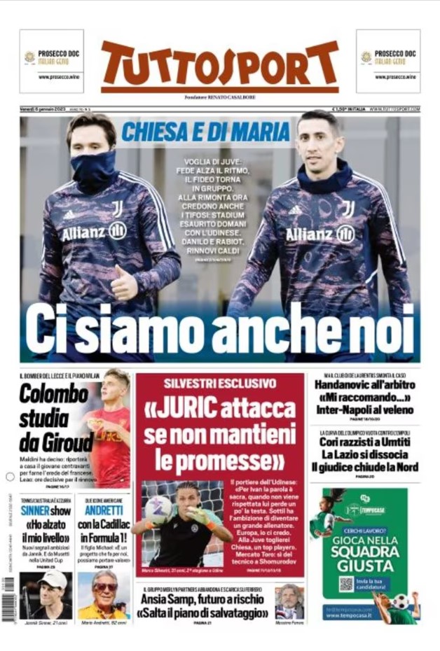 La redazione di calciocrotone.it propone ai lettori le prime pagine dei tre quotidiani sportivi in edicola oggi, venerdì 6 gennaio 2023. Di seguito le prime di La Gazzetta dello Sport, Corriere dello Sport e TuttoSport. Buona visione.