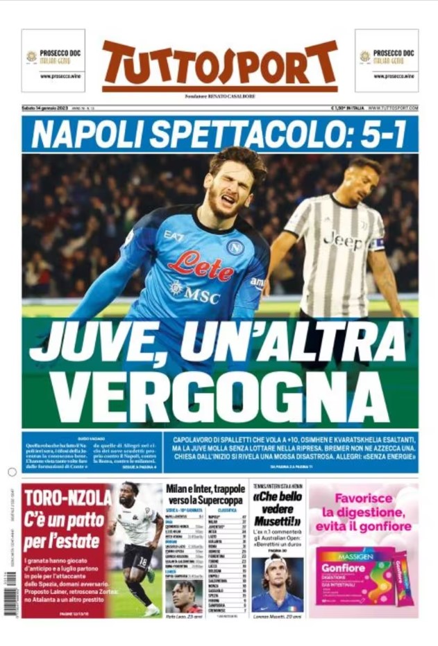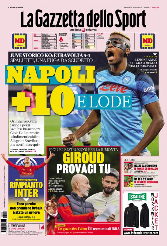 La redazione di calciocrotone.it propone ai lettori le prime pagine dei tre quotidiani sportivi in edicola oggi, sabato 14 gennaio 2023. Di seguito le prime di La Gazzetta dello Sport, Corriere dello Sport e TuttoSport. Buona visione.