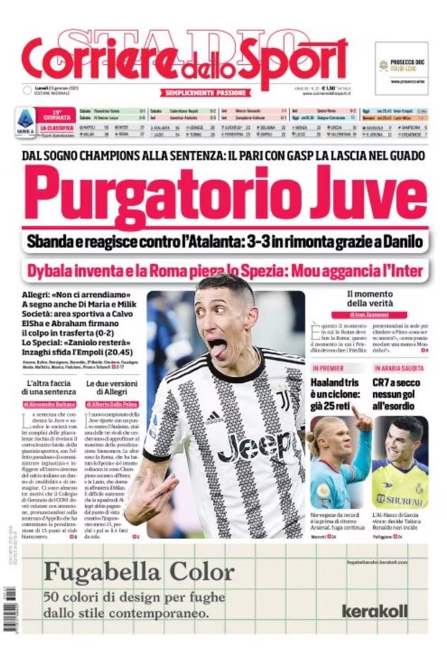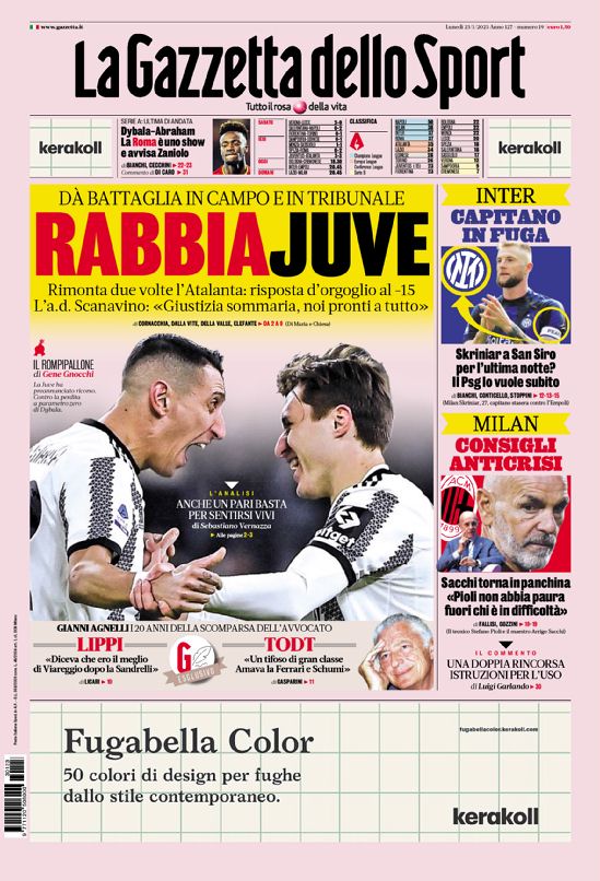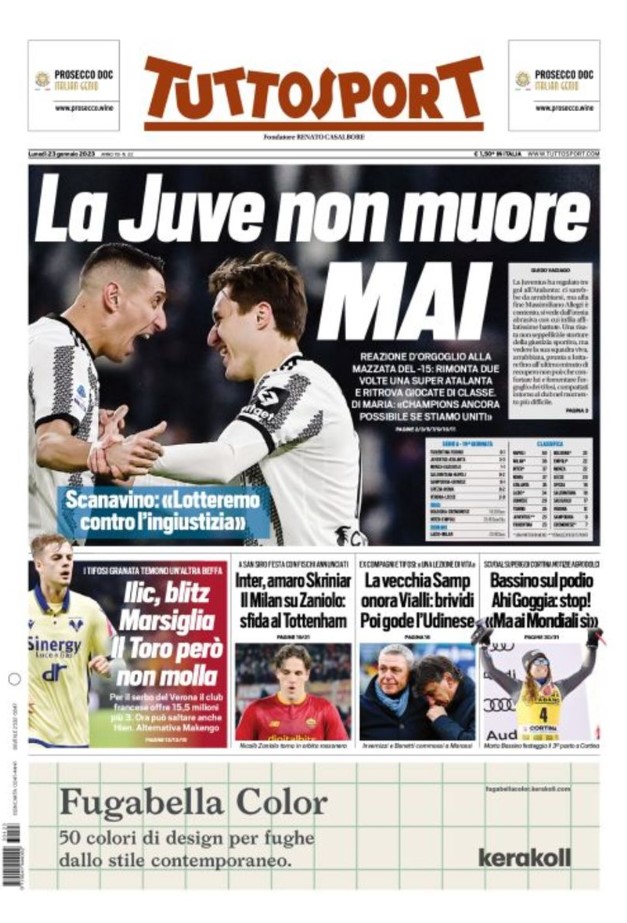 La redazione di tifocosenza.it propone ai lettori le prime pagine dei tre quotidiani sportivi in edicola oggi, lunedì 23 gennaio 2023. Di seguito le prime di La Gazzetta dello Sport, Corriere dello Sport e TuttoSport. Buona visione.