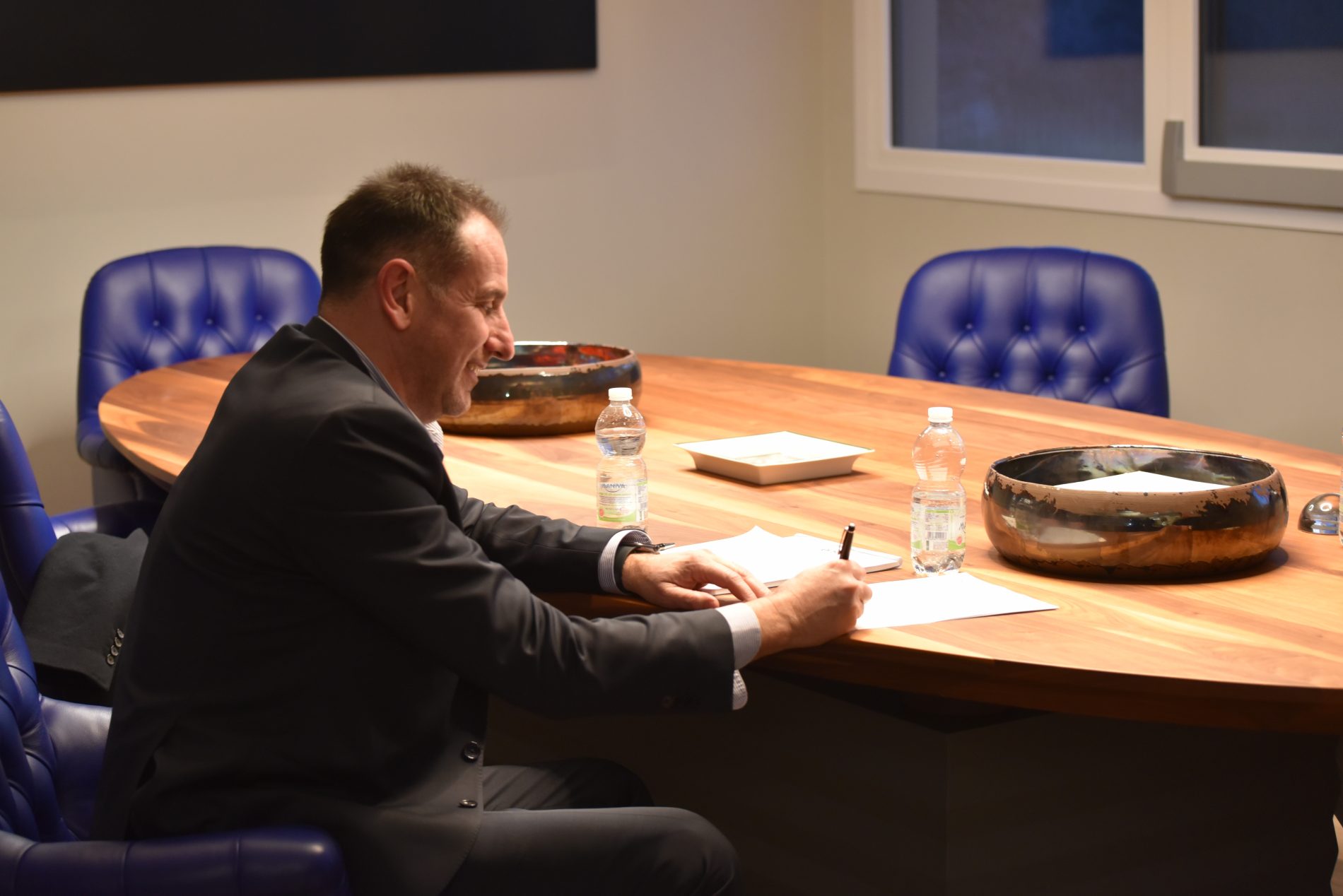 Arrivato nel pomeriggio in città ha incontrato il presidente Gianni Vrenna e il direttore generale Raffaele Vrenna per la firma del contratto