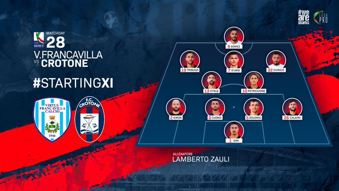 C’era curiosità, più che altro, per conoscere il primo undici di Lamberto Zauli. Il nuovo allenatore debutta sulla panchina del Crotone sul difficilissimo campo del Francavilla. Il modulo scelto dal successo di Lerda è il 4-2-3-1 con la novità Giron dal primo minuto sulla corsia sinistra a completare il quartetto difensivo.