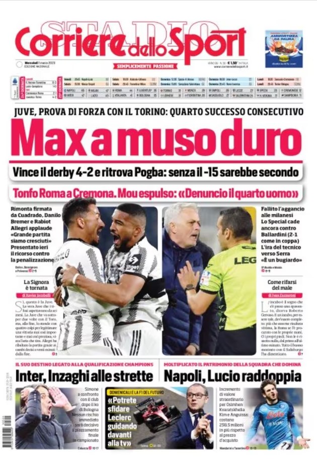 La redazione di calciocrotone.it propone ai lettori le prime pagine dei tre quotidiani sportivi in edicola oggi, mercoledì 1 marzo 2023. Di seguito le prime di La Gazzetta dello Sport, Corriere dello Sport e TuttoSport. Buona visione.