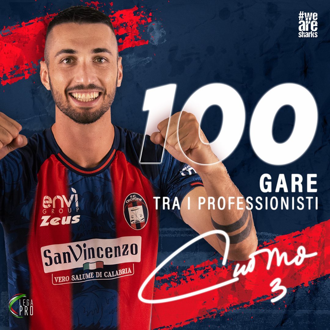 È stato un sabato speciale per Giuseppe Cuomo quello di Picerno. Magari amareggiato per il pareggio del Crotone contro la formazione di Longo ma a livello personale molto felice. Infatti è entrato nel club dei 100! Un traguardo eccezionale per il difensore centrale nato a Vico Equense il 2 febbraio 1998 e cresciuto nel settore giovanile del Crotone, squadra con la quale ha sempre giocato tranne una breve parentesi al Rende in Serie C campionato 2017-2018.