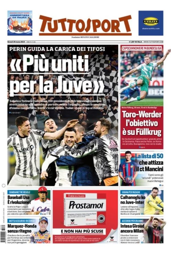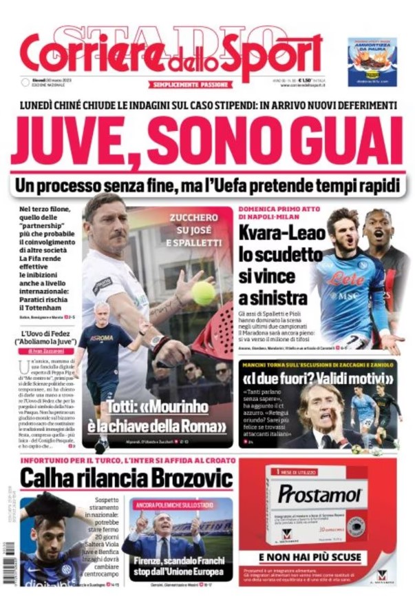 La redazione di calciocrotone.it propone ai lettori le prime pagine dei tre quotidiani sportivi in edicola oggi, giovedì 30 marzo 2023. Di seguito le prime di La Gazzetta dello Sport, Corriere dello Sport e TuttoSport. Buona visione.