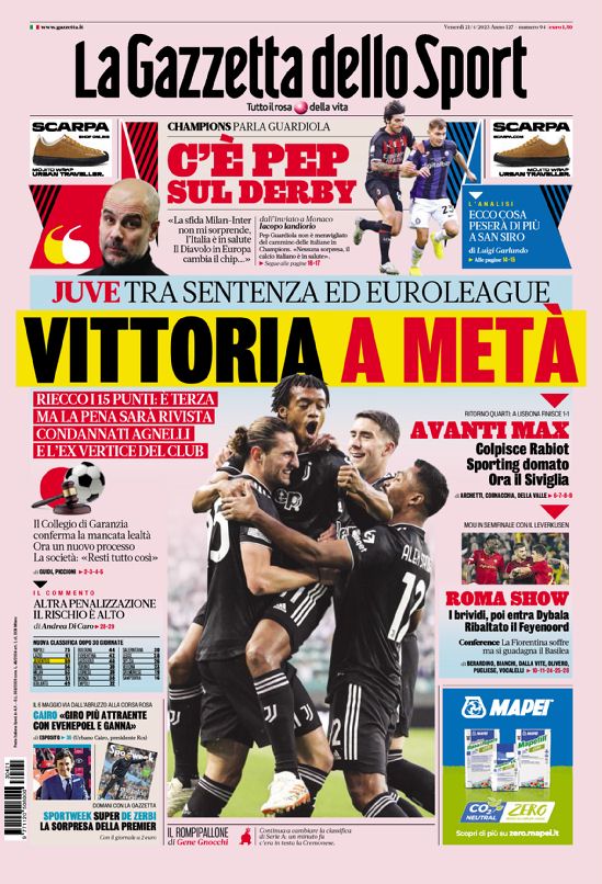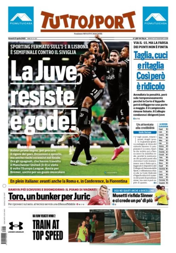 La redazione di calciocrotone.it propone ai lettori le prime pagine dei tre quotidiani sportivi in edicola oggi, venerdì 21 aprile 2023. Di seguito le prime di La Gazzetta dello Sport, Corriere dello Sport e TuttoSport. Buona visione.