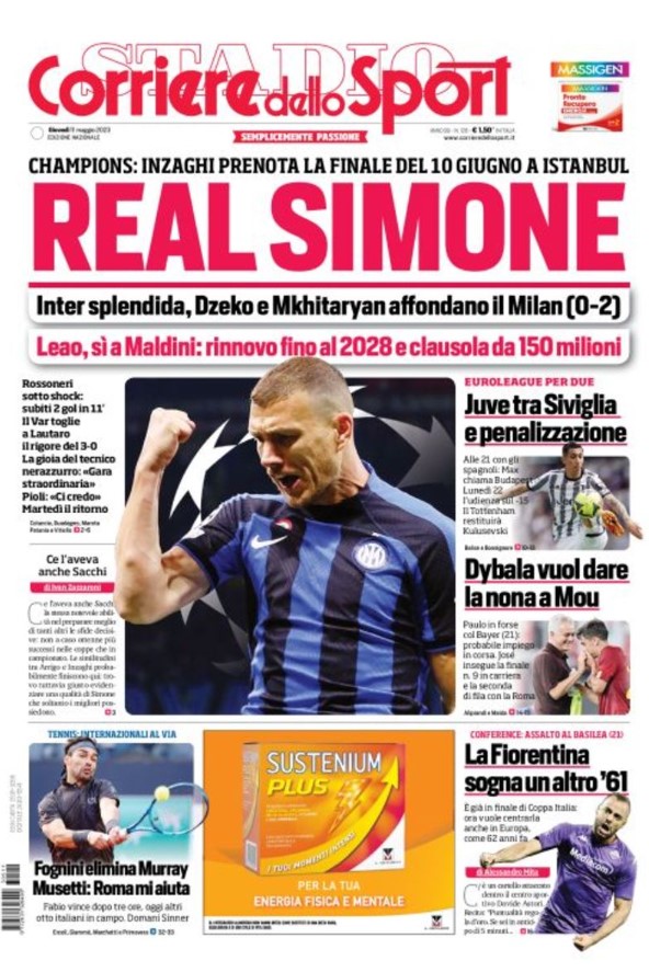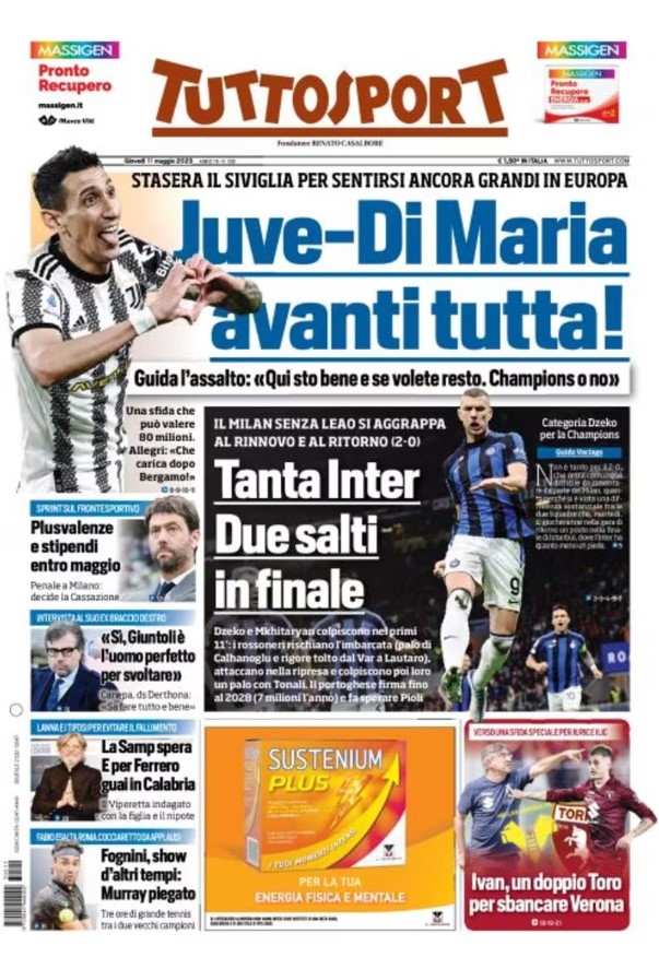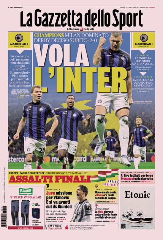 La redazione di calciocrotone.it propone ai lettori le prime pagine dei tre quotidiani sportivi in edicola oggi, giovedì 11 maggio 2023. Di seguito le prime di La Gazzetta dello Sport, Corriere dello Sport e TuttoSport. Buona visione.