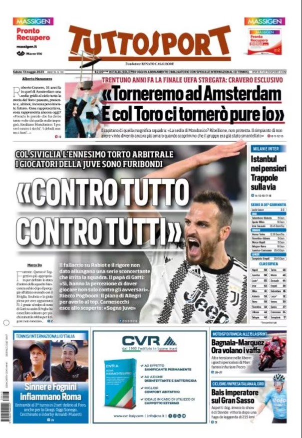 La redazione di calciocrotone.it propone ai lettori le prime pagine dei tre quotidiani sportivi in edicola oggi, sabato 13 maggio 2023. Di seguito le prime di La Gazzetta dello Sport, Corriere dello Sport e TuttoSport. Buona visione.