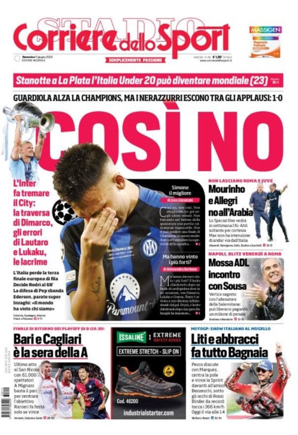 La redazione di calciocrotone.it propone ai lettori le prime pagine dei tre quotidiani sportivi in edicola oggi, domenica 11 giugno 2023. Di seguito le prime di La Gazzetta dello Sport, Corriere dello Sport e TuttoSport. Buona visione.