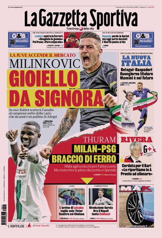 La redazione di calciocrotone.it propone ai lettori le prime pagine dei tre quotidiani sportivi in edicola oggi, domenica 18 giugno 2023. Di seguito le prime di La Gazzetta dello Sport, Corriere dello Sport e TuttoSport. Buona visione.