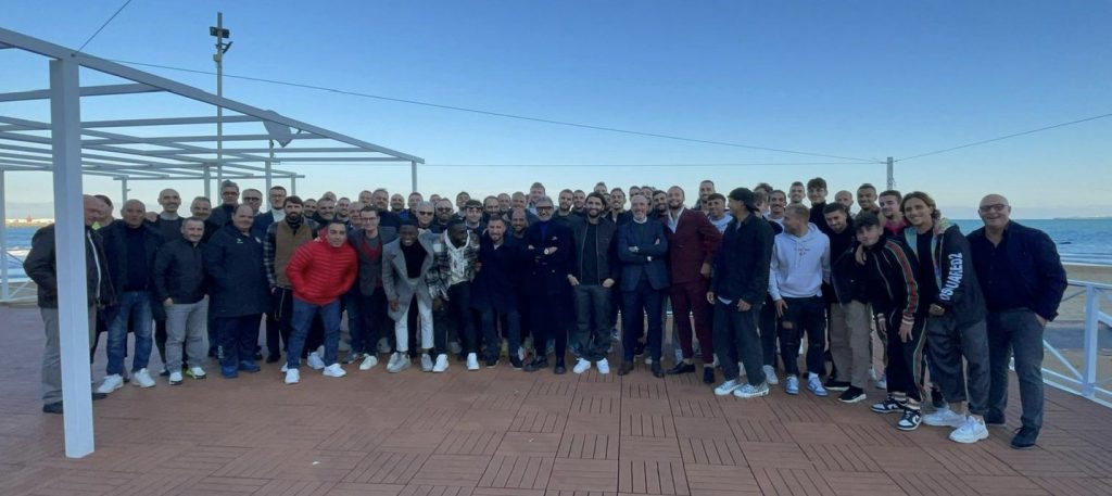 Prima la seduta di allenamento mattutino al Centro sportivo Antico Borgo poi tutta la famiglia rossoblù insieme per il brindisi...